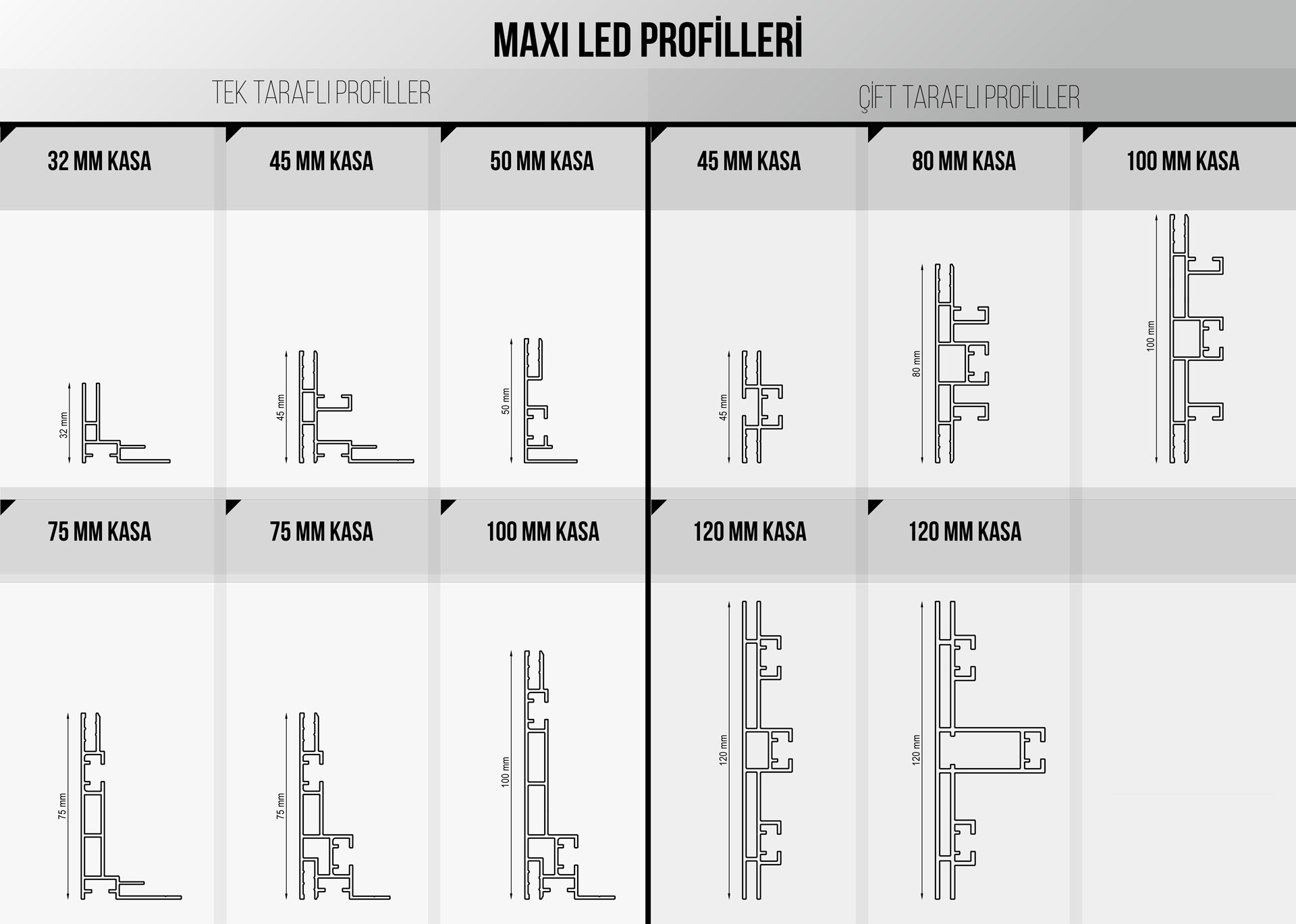 Lightbox kasalarının yapısal özellikleri, dış ve iç mekân tabela uygulamalarında stabil çalışma, eşit ışık dağılımı ve montaj kolaylığı sağlar. LED aydınlatma unsurları ile entegre şekilde çalışabilen bu kasalar, hem markanın görsel ifadesini güçlendirir hem de reklam mesajlarının her ortamda optimum görünürlükle sergilenmesine katkı sağlar.